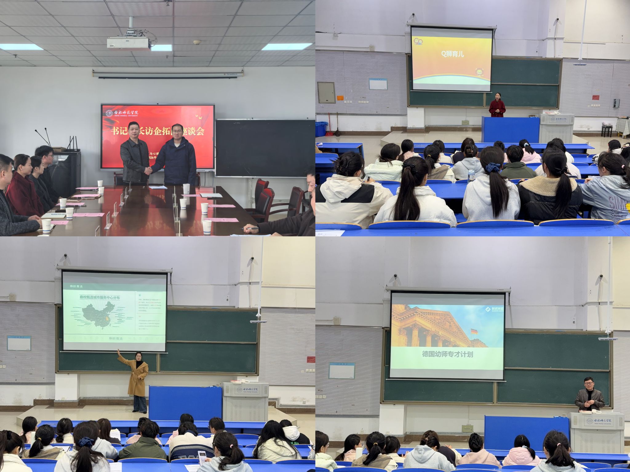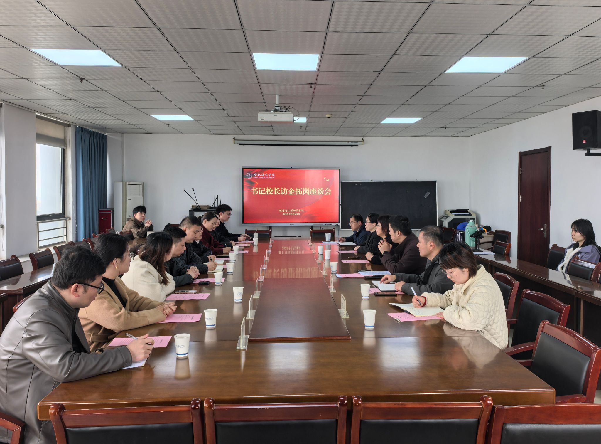 方东玲对用人单位的到访表示欢迎和感谢,简要介绍了学校的发展历程、办学规模、学科专业布局以及教育心理领域核心优势。她指出,学校是安徽省最早建立的5所本科高校之一,历经转设、申硕等重要发展节点,成功转型为拥有教育、电子信息等多个硕士点的综合性高校,不仅实现了办学层次的跃升,更提升了服务社会能力。她强调,高校要主动将自身发展置于“教育强国”“健康中国”等国家战略和地方经济社会发展大局中,当前学校与合肥市政府连续五年深度合作,共建基础教育研究院,承担全省基础教育质量监测等工作;学校凭借心理学“高峰学科”和国家级一流专业的雄厚实力,依托安徽省学生心理健康教育管理平台和青少年心理健康与危机智能干预安徽省哲学社会科学重点实验室,构建了“监测-预警-干预”的专业服务体系,为全省大中小学提供全方位心理健康服务。