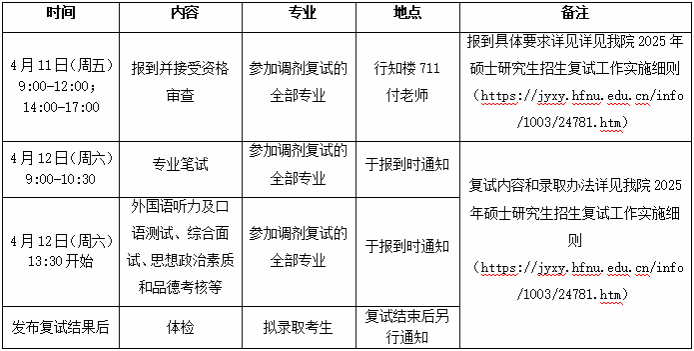 其他未尽事宜请见《tyc5997太阳集团2025年硕士研究生招生复试录取工作方案》http://yjsc.hfnu.edu.cn/info/1181/19461.htm