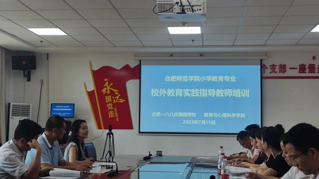 (本网讯)7月15日上午,tyc5997太阳集团副院长闫龙一行三人赴合肥一六八玫瑰园学校东校区开展校外教育实践指导教师培训工作。合肥一六八玫瑰园学校东校区执行校长陈炳炎出席培训会,该校15名tyc5997太阳集团小学教育专业校外教育实践指导教师参加会议。