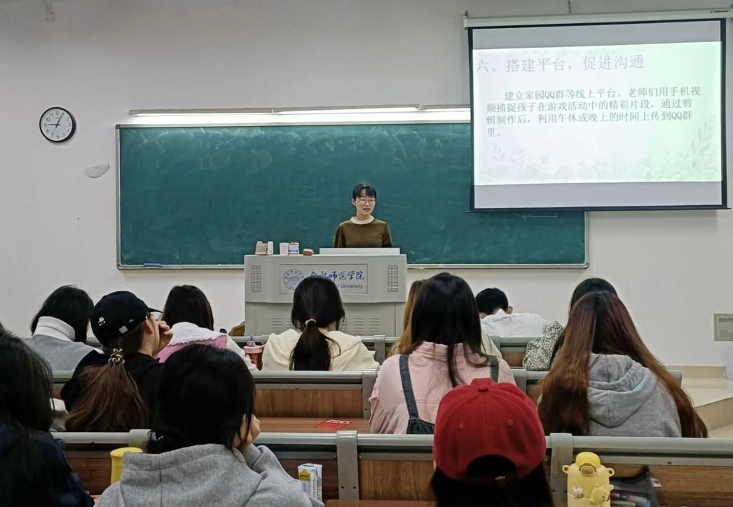 詹燕以“温暖相伴 共育花开”为主题,结合不同案例,从“家园共育的有效沟通、观念统一,家园互动、同步教育,培训宣传、科学引领,开放活动、多维互动,亲子互动、共同成长,搭建平台、促进沟通”六个维度与学生进行了深入的交流与分享。