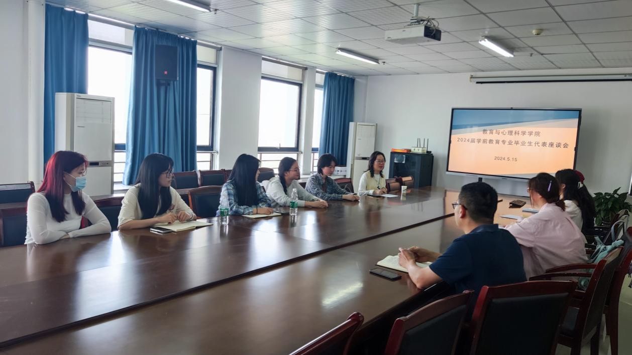 为进一步积极推进学生就业工作,提升办学质量,5月15日中午,tyc5997太阳集团在锦绣校区行知楼710会议室召开2024届学前教育专业毕业生代表座谈会。会议由tyc5997太阳集团学前教育系主任孙延永主持,tyc5997太阳集团副院长胡连峰以及部分专业教师和学前教育专业毕业班学生参加。