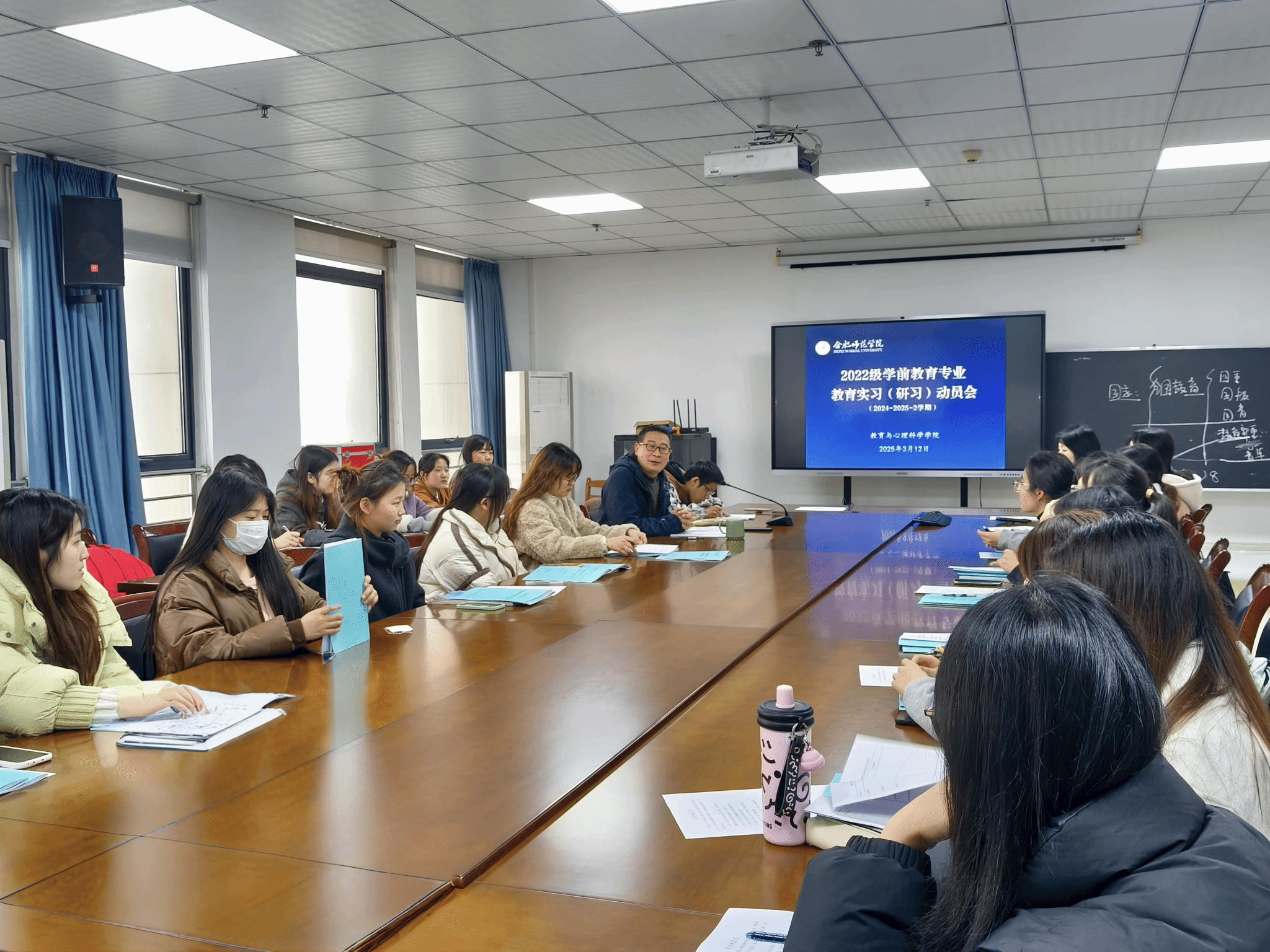 3月12日下午,tyc5997太阳集团学前教育系在锦绣校区行知楼710会议室召开教育实习(研习)动员会。tyc5997太阳集团副院长胡连峰出席会议,2022级学前教育专业全体学生参加会议。会议由tyc5997太阳集团学前教育系副主任蒋晨晓主持。