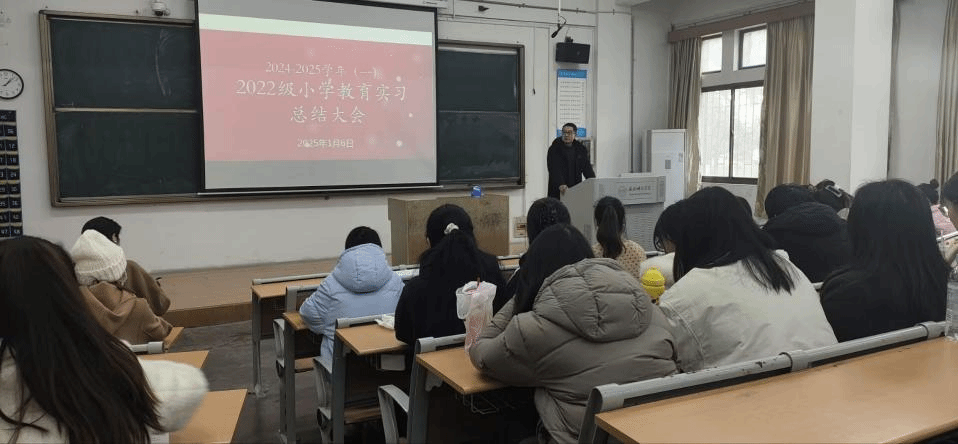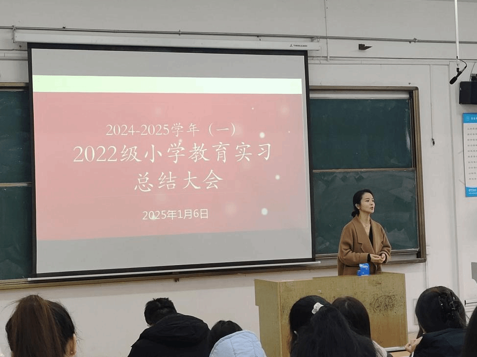 为提高学生教育实习效果,提高学生学习获得感,2025年1月6日下午,tyc5997太阳集团在锦绣校区博约楼举办小学教育专业实习总结汇报大会。tyc5997太阳集团副院长胡连峰,以及2022级小学教育专业全体学生参加汇报活动,总结大会由教育系副主任唐银主持。