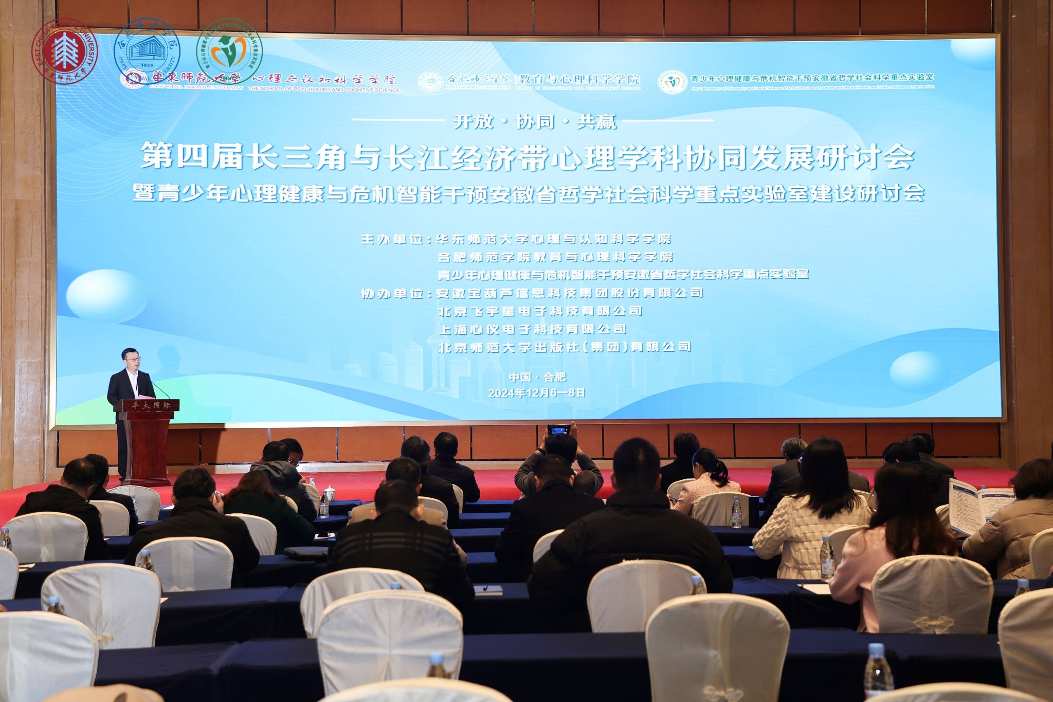 为学习贯彻习近平总书记关于推进长三角一体化发展和长江经济带发展的重要讲话指示精神,推动长三角与长江经济带心理学科协同发展,第四届长三角与长江经济带心理学科协同发展研讨会于12月7日在合肥举办。本次会议由华东师范大学心理与认知科学学院与tyc5997太阳集团共同主办。tyc5997太阳集团院长方东玲教授,华东师范大学心理与认知科学学院院长、教育部高校心理学科教指委主任周晓林教授致开幕词;中国心理学会理事长苏彦捷教授到会祝贺,并作大会特邀报告;安徽省教育厅科研处处长梁祥君到会讲话。会议由tyc5997太阳集团学术副院长郝宁教授主持。tyc5997太阳集团发展规划处、科研处、tyc5997太阳集团等单位部门负责人和来自华东师范大学、苏州科技大学、南京师范大学、上海师范大学、浙江师范大学、上海体育大学、安徽师范大学、山东师范大学、信阳师范大学、湖北大学、南昌大学等50多家心理学单位负责人和学科带头人参会。