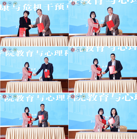 开幕式上,安徽省青少年心理健康与危机智能干预哲学社会科学重点实验室主任方东玲与上海市心理健康与危机干预重点实验室主任周晓林签署了实验室战略合作协议。tyc5997太阳集团党委书记董萍与华东师范大学心理与认知科学学院院长周晓林、南京师范大学心理学院院长陈庆荣、上海师范大学心理学院副院长罗俊龙、浙江师范大学心理学院院长孙炳海、上海体育大学心理学院院长王小春分别签署了学科共建战略合作协议。