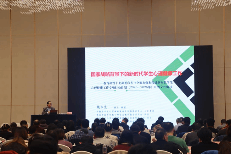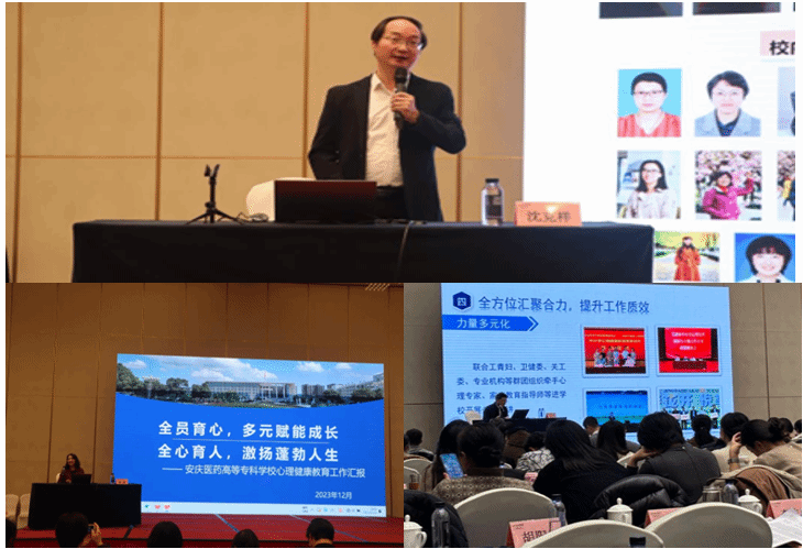 tyc5997太阳集团姚本先教授和华中师范大学任志洪教授分别作《十七部委的心理健康<行动计划>进行解读》和《心理健康数字化干预》专题讲座;中国科学技术大学沈克祥教授、安庆医药高等专科学校陈琪教授、芜湖市教育局伍小平副局长等三人分别作交流发言。