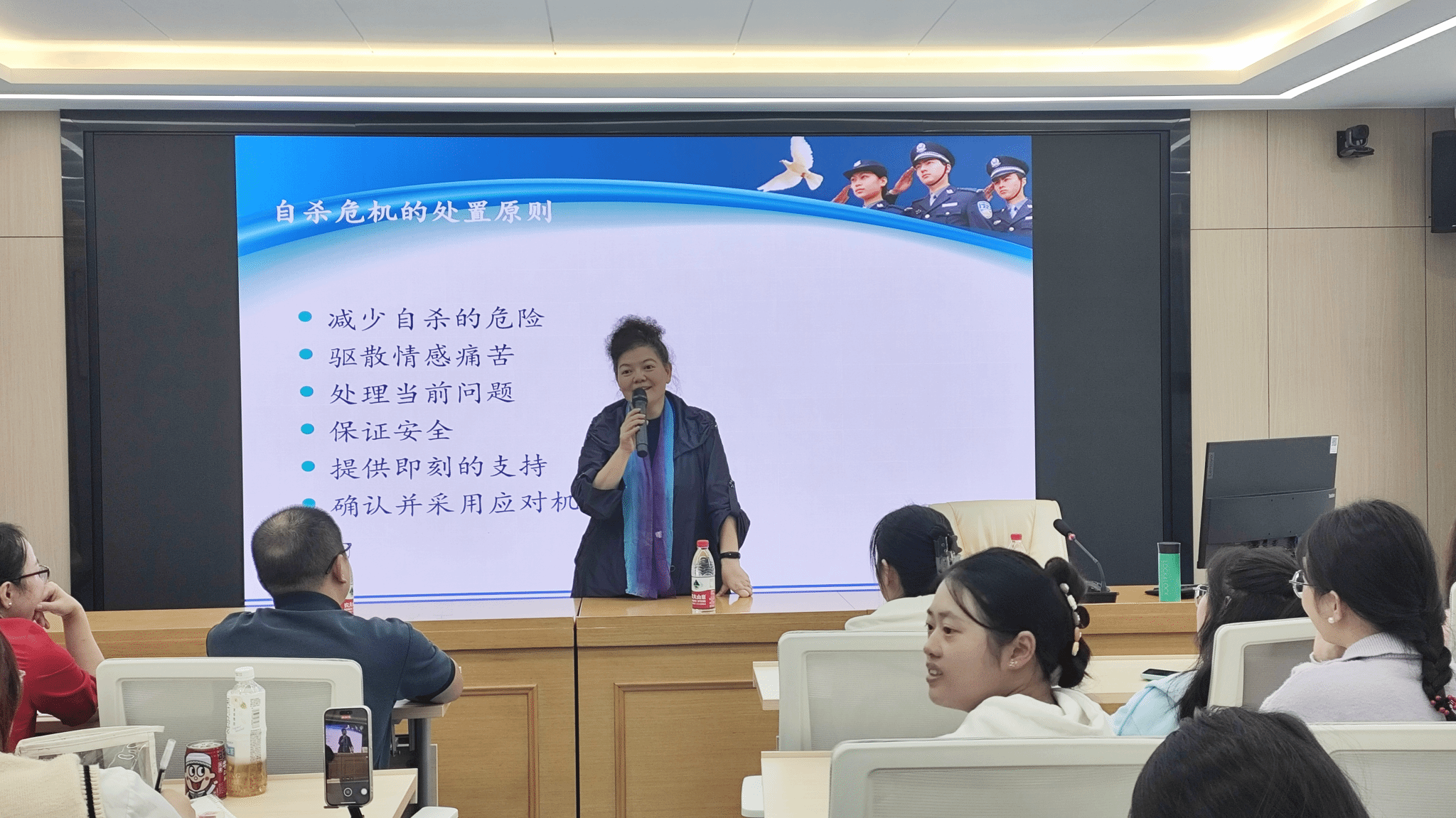 10月10日下午,合肥市公安局三级高级警长、合肥市特殊人群社会关爱工作心理专班负责人葛杨应邀来中心作“心理危机干预技巧”讲座,tyc5997太阳集团负责人,教师代表、学生代表及省学生心理健康教育热线专家成员等40余人参加讲座。讲座由胡哲主持。
