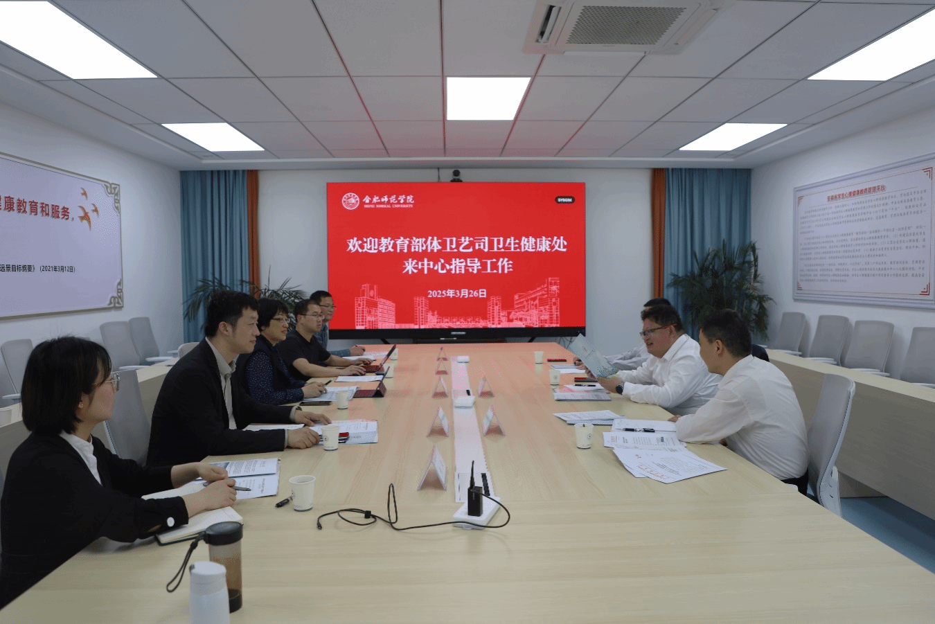 3月26日下午,教育部体卫艺司卫生健康处处长樊泽民一行来我校调研安徽省学生心理健康教育指导和发展中心,安徽省教育厅学生处处长马家松、院党委副书记、院长方东玲陪同调研,tyc5997太阳集团负责人及教师代表参加调研座谈会。