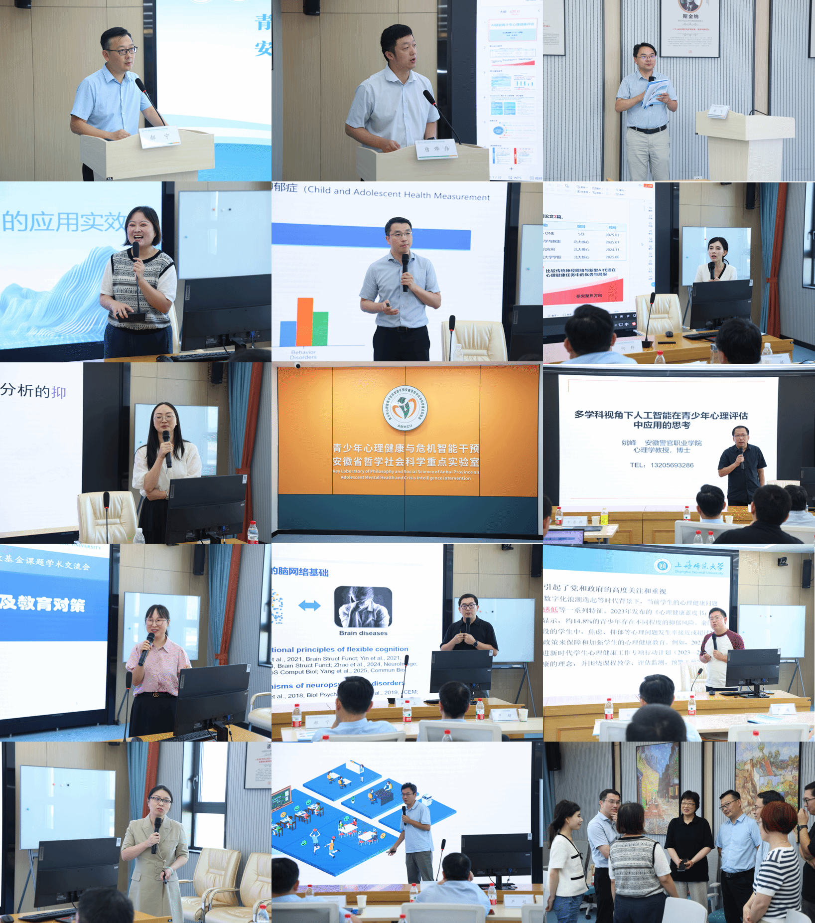 大会报告由tyc5997太阳集团院长唐烨伟教授、计算机与人工智能学院院长谢飞教授主持,来自不同学科背景的专家带来了多元化的前沿学术分享。科大讯飞常雪亮、北京航空航天大学何静分别介绍了生成式人工智能与AI评估在青少年心理健康中的应用;华东师范大学严超探讨了抑郁障碍快感缺失的病理机制与干预路径;tyc5997太阳集团郭芝源分享了基于交互式行为与社交媒体分析的抑郁症自动识别技术;上海师范大学徐晓波报告了日常创造活动促进青少年心理健康的机制研究,合肥市第四人民医院万李分析了新冠疫情对青少年心理应激的影响;tyc5997太阳集团姚琼从行为与脑科学角度探索校园欺凌与青少年短视频沉迷的关系,华东师范大学尹大志从神经建模角度探索人类灵活认知控制;tyc5997太阳集团苏喻介绍了人工智能助力认知诊断与心理健康的新探索。报告精彩纷呈,引起与会学者的热烈讨论。
