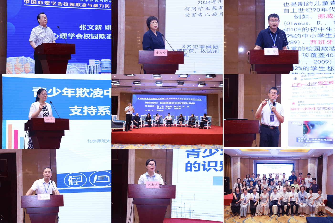 会议期间,与会专家围绕“校园欺凌防治的校家社协同”开展了圆桌论坛及中小学校园欺凌与暴力防治论坛,并就“同伴侵害与攻击行为”“欺凌行为的发生机制”“欺凌行为中的保护者”“受欺凌与心理行为问题”“受欺凌与内外化问题”“校园欺凌的预防干预”“校园欺凌防治中成人的作用”“网络欺凌的发生机制”“同伴关系与校园欺凌”等主题展开分组报告,进行深度交流研讨。岭南师范学院郑剑虹教授与何承林博士举办了心理传记疗法工作坊。