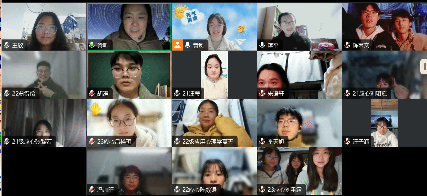 本网讯 12月6日晚,心理系成功举办线上师生教学座谈会。座谈会由心理系教师代表黄凤老师、梁昕老师和蒋名平老师主持并参与,各年级班委代表和学生代表参会。