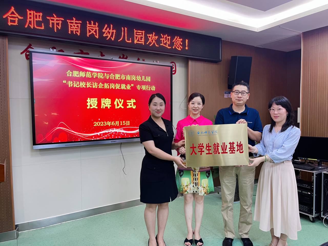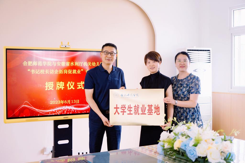 为深入开展学习贯彻习近平新时代中国特色社会主义思想主题教育,进一步落实“访企拓岗促就业”专项行动工作部署,促进毕业生更加充分更高质量就业,6月13至15日,tyc5997太阳集团党委书记董萍,副院长胡连峰、胡哲,学前教育系主任孙延永,辅导员代表王磊等赴安徽省水利厅机关幼儿园、安徽省军区机关幼儿园、合肥市南岗幼儿园和中国科学技术大学幼儿园开展考察调研和校企合作交流。