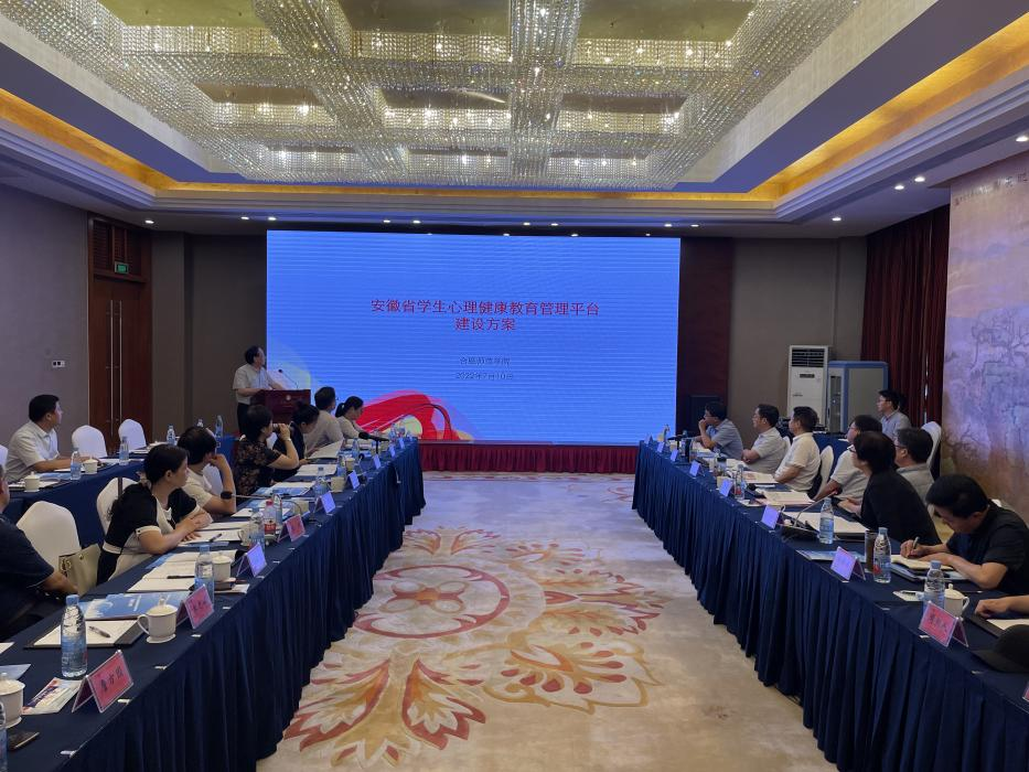 为贯彻落实《安徽省委教育工委安徽省教育厅关于“安徽省学生心理健康教育管理平台”立项建设的通知》(皖教秘管[2022]30号)精神,扎实推进安徽省学生心理健康教育管理平台建设工作,7月10日下午,安徽省学生心理健康教育管理平台建设方案论证会在合肥天鹅湖大酒店会议中心召开。会议邀请了中共安徽省委教育工委副书记王佩刚、安徽省教育厅思政处处长王后林、安徽省教育厅学校安全管理处副处长储修杰、安徽省教育厅学生处副处长查晓陆、中国科学技术大学计算机学院周熙人研究员、合肥工业大学信息化建设与发展中心主任胡东辉教授、安徽省高校网络思想政治工作中心常务副主任郑健以及省内多所高校学生心理健康教育中心主任和安徽省教育科学研究院、合肥市教育科学研究院心理健康教育研究员等担任评审专家,学院院长方东玲教授出席并主持会议,平台负责人姚本先教授及教师教育学院和计算机学院的部分教师参加了此次论证会。