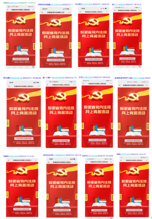 为深入贯彻落实习近平总书记关于依规治党的重要论述精神,结合庆祝“七一”,在tyc5997太阳集团党委和教师教育学院党委的领导下,2022年7月,教师教育学院教育系教工党支部开展党内法规知识网上竞答活动,教育系党支部全体党员积极参加。