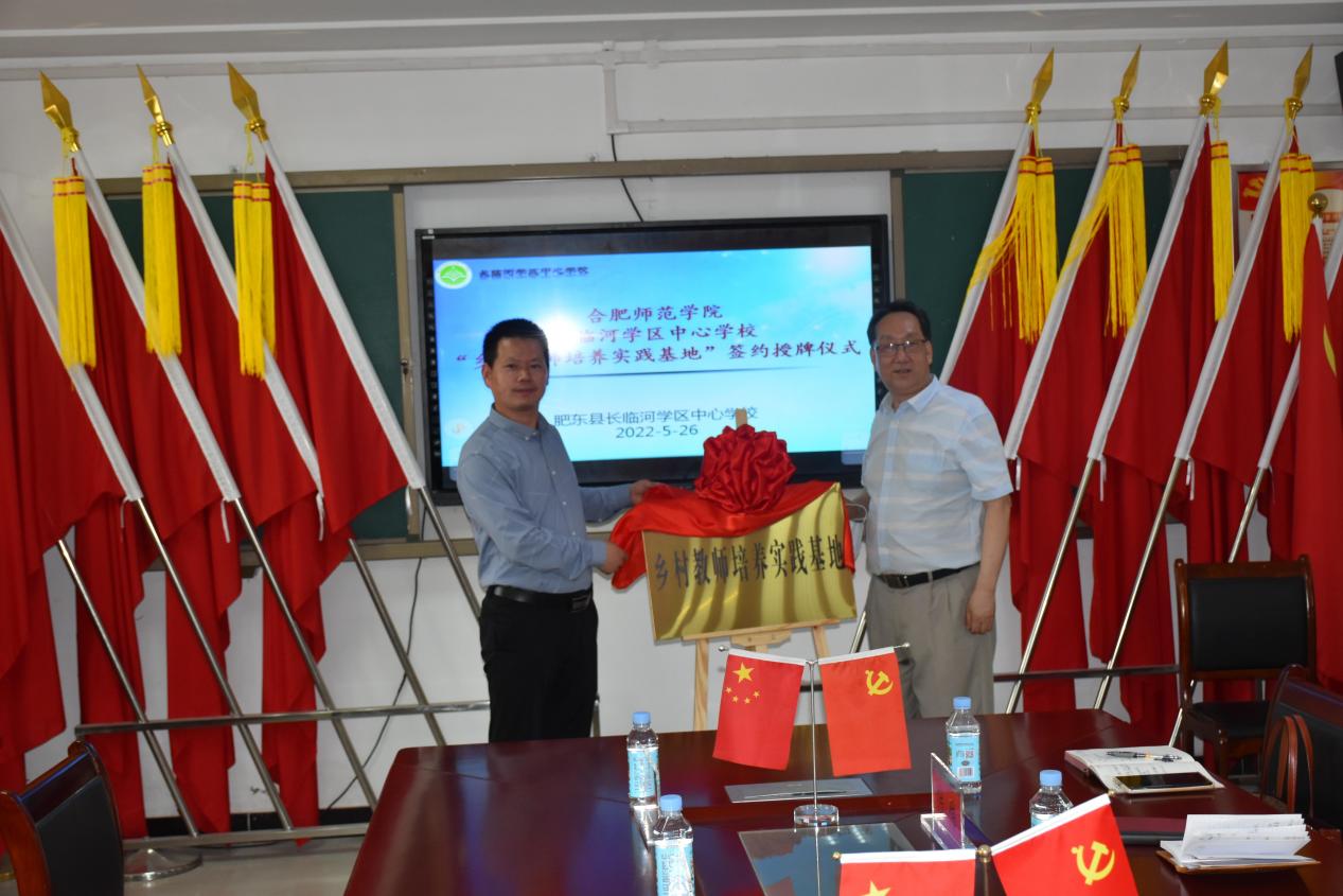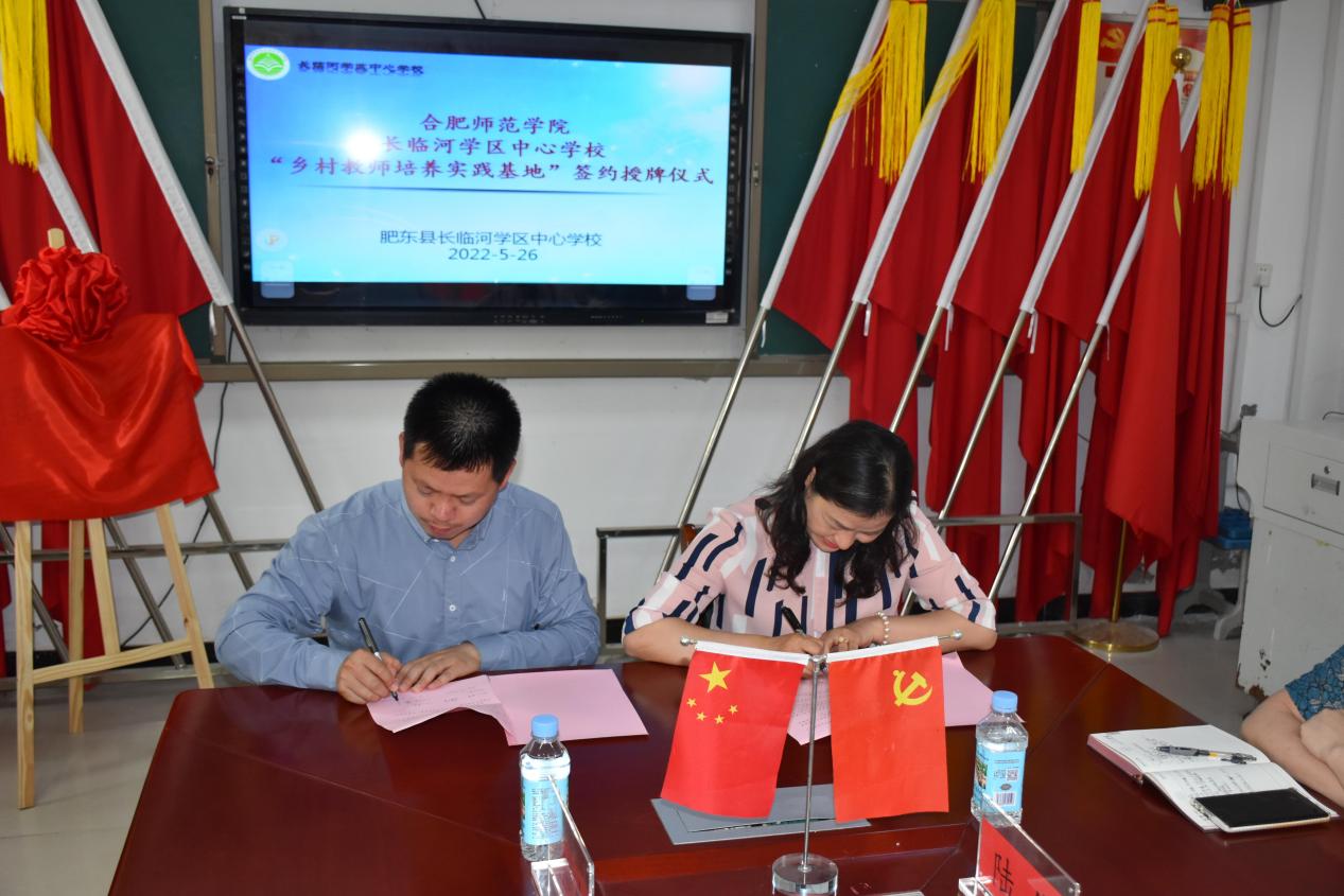 随后,tyc5997太阳集团党委委员、副院长姚本先、就业创业工作处长马平、巢湖市黄麓学区主任、校长方万年、肥东县长临河中心学校校长张杰分别为基地揭牌,穆娟与肥东县长临河学区中心学校校长张杰进行了现场签约,双方均表示将携手进一步加强师范生高质量的培养与发展。(教师教育学院:屠家宝)