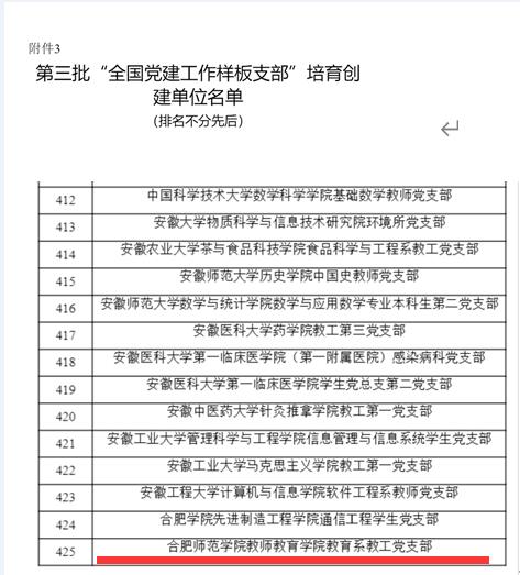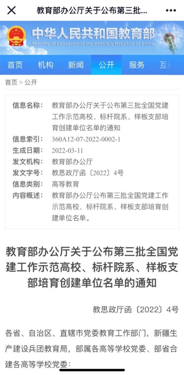 近日,教育部办公厅发布了《关于公布第三批全国党建工作示范高校、标杆院系、样板支部培育创建单位名单的通知》,全国共遴选产生了11个全国党建工作示范高校、100个全国党建工作标杆院系、1000个全国党建工作样板支部培育创建单位,教师教育学院教育系教工党支部入选“全国党建工作样板支部”培育创建单位,获得党建工作新突破。