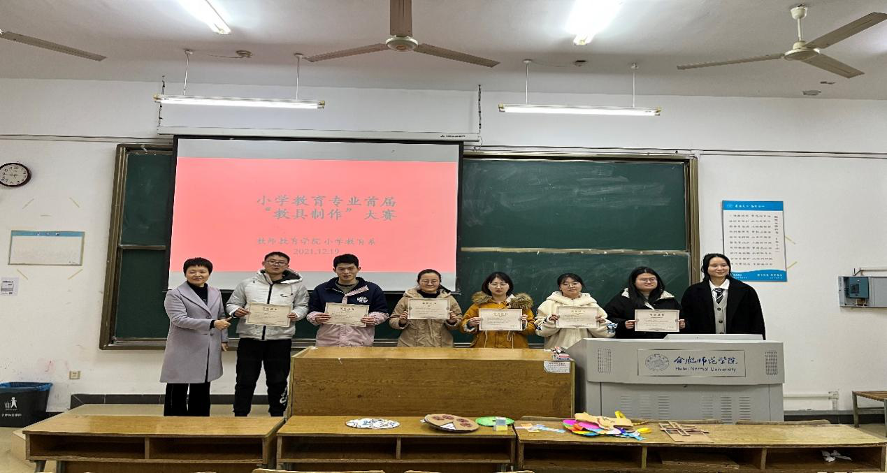 为深入学习贯彻习近平总书记关于教育的重要论述和全国教育大会精神,落实中共中央国务院《关于全面深化新时代教师队伍建设改革的意见》,大力提升教师专业能力,创新师范生培养模式,强化师范生的教育实践,2021年12月19日下午教师教育学院小学教育专业首届“教具制作”(数学)大赛在锦绣校区博约楼110教室顺利举行,2019级小学教育专业全体学生参加了本次比赛。