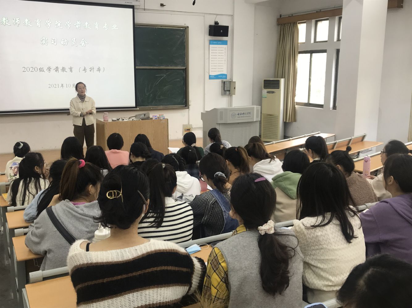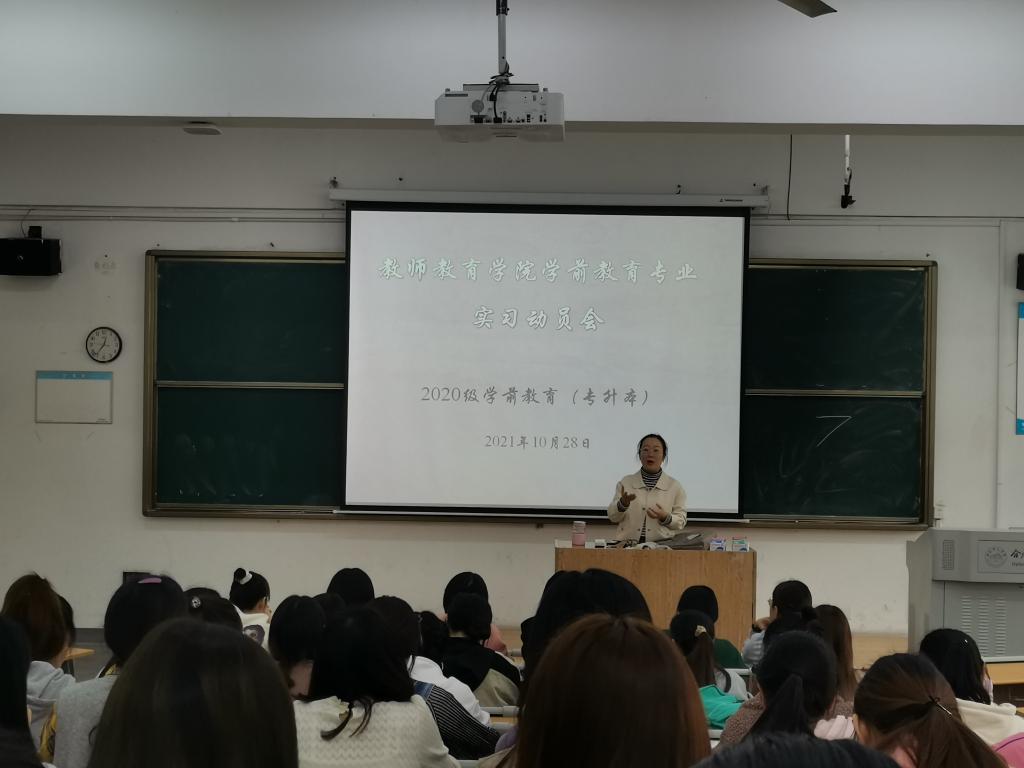 为进一步做好专业教学实践,引导学生做好实习前的各项准备,推进实习工作的顺利开展,2021年10月28日下午,教师教育学院在博约楼112教室举行了2020级学前教育(专升本)班的实习动员会,会议由学前教育系主任孙延永老师主持,学前教育专业欧阳娟等老师及2020级学前专升本班全体学生参加。