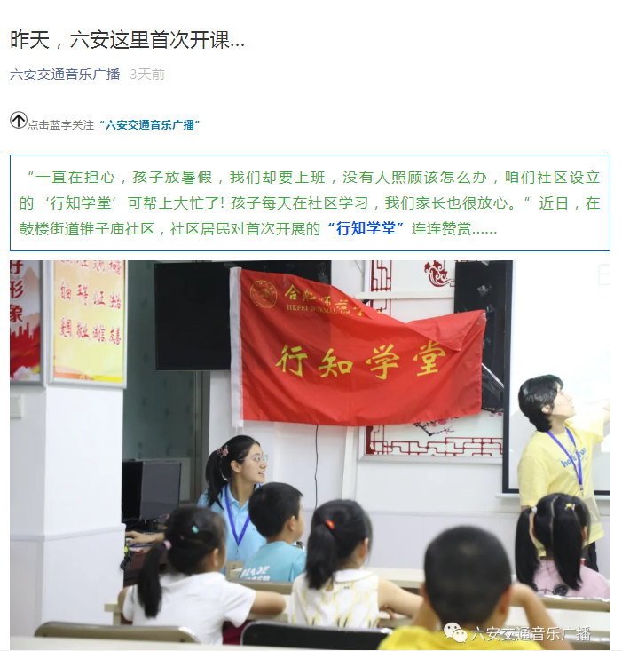 7月13日,六安交通音乐广播进行了报道。(教师教育学院:王磊)