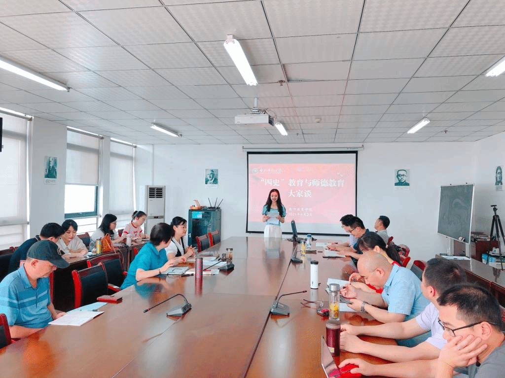 “四史”教育和师德教育大家谈旨在通过邀请学院教职工分享对“四史”学习教育及师德专题教育的感悟、在教学实践中融会贯通党史教育、以德立身以德立学以德施教的具体举措等,充分调动广大教职工参与党史学习教育和师德专题教育的积极性、主动性,引导教师学做融合、知行合一、立足教书育人一线践行弘扬高尚师德。