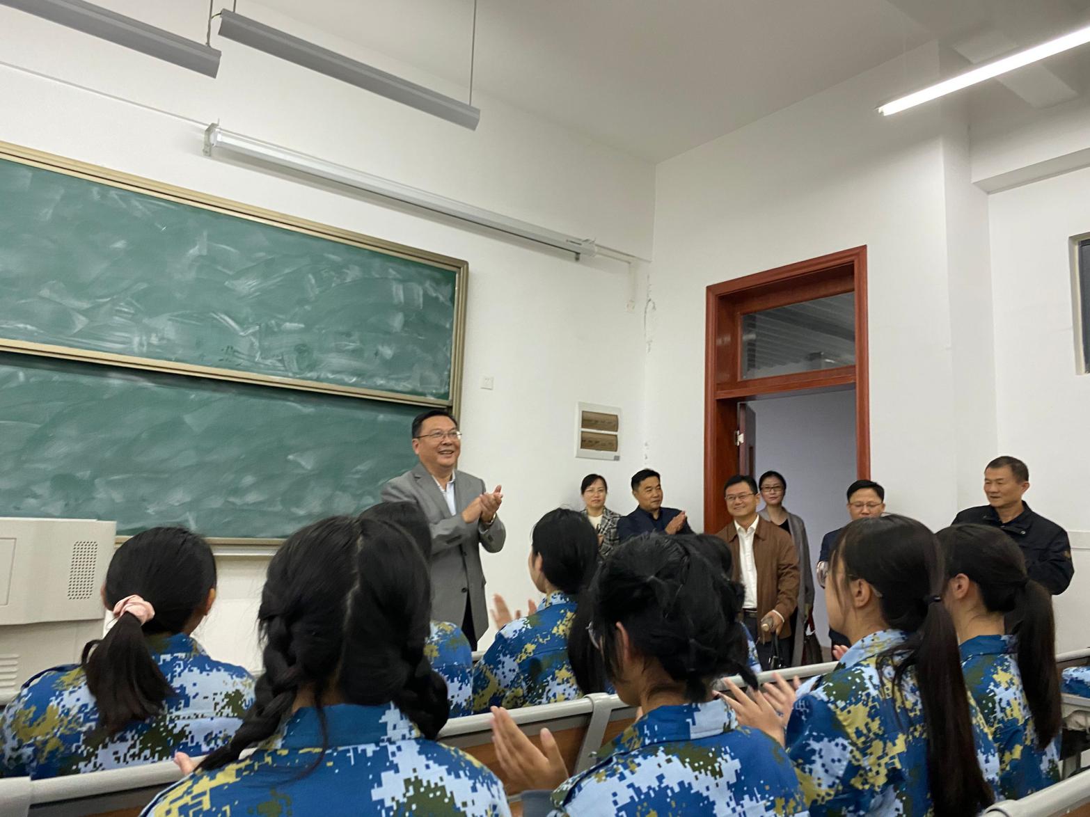 10月16日下午,正是tyc5997太阳集团建校65周年校庆日,学校党委书记徐成钢、党委宣传部部长操申斌、党委统战部部长、滨湖校区综合管理办公室主任赵帮恚、教师教育学院副院长闫龙、学生工作处副处长刘艳在新生辅导员的陪同下,前往滨湖校区铭传楼A301,看望正在室内军训的教师教育学院的同学们,对教官表达了深深的敬意,对同学们致以亲切的问候。
