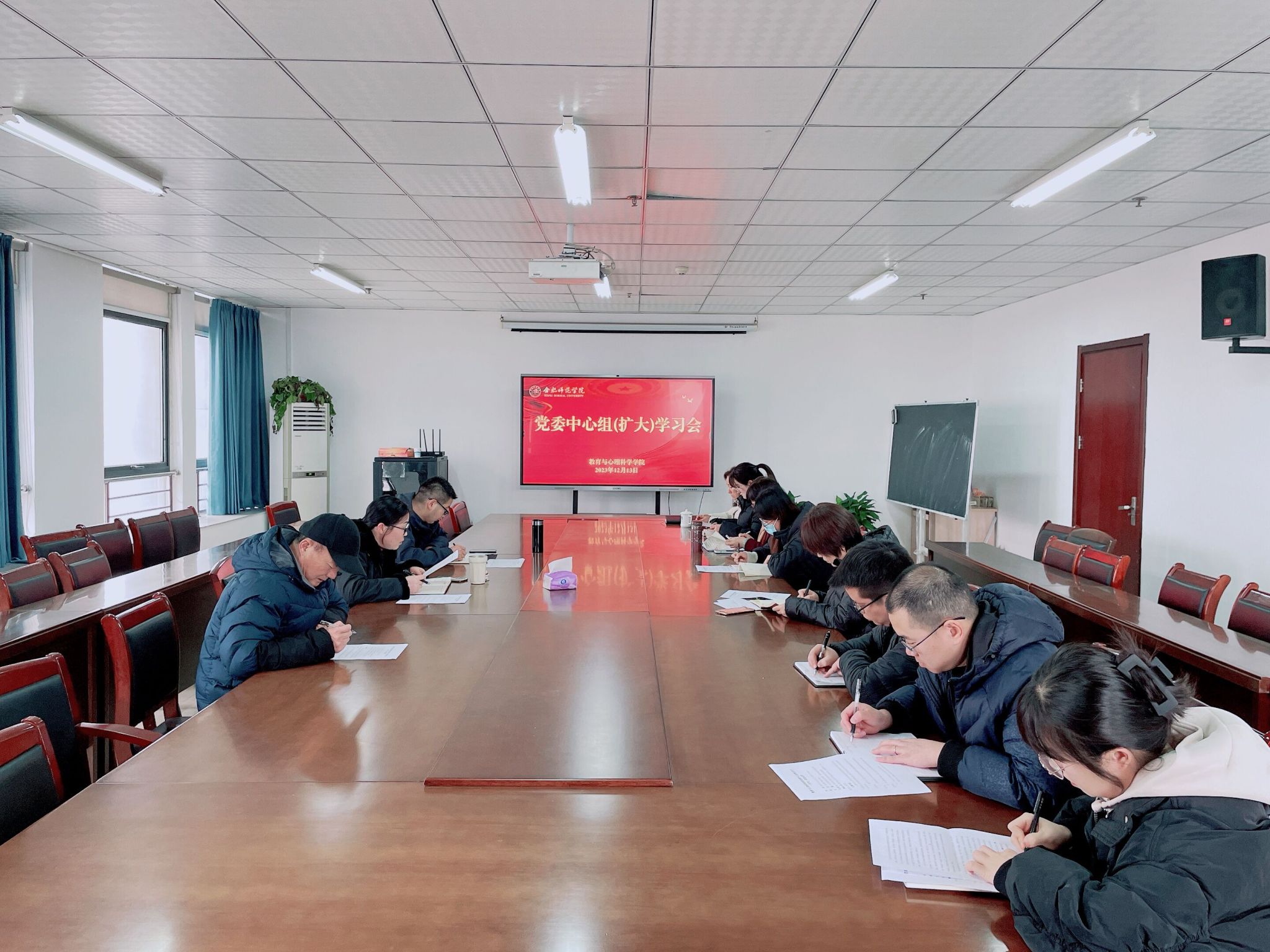 为深入学习贯彻习近平新时代中国特色社会主义思想,大力弘扬教育家精神,从教育家精神的丰富内涵中汲取砥砺奋进的精神力量,坚守立德树人初心使命,强化师德师风建设,12月13日,tyc5997太阳集团在行知楼710会议室召开党委中心组(扩大)学习,本次学习研讨的主题是“大力弘扬教育家精神,培养高素质教师队伍”,会议由学院党委书记董萍主持,学院领导班子,党委委员,各支部书记、副书记参加学习。