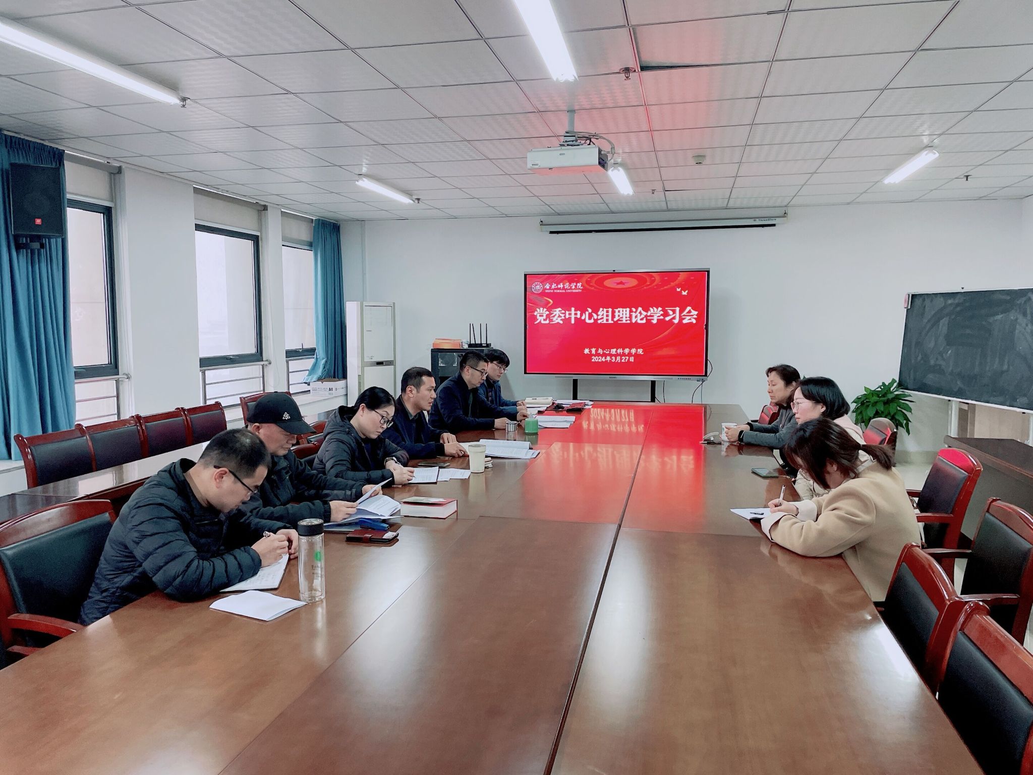 3月27日下午,tyc5997太阳集团在行知楼710会议室召开党委理论学习中心组学习会,中心组成员参加学习研讨,会议由党委书记董萍主持。