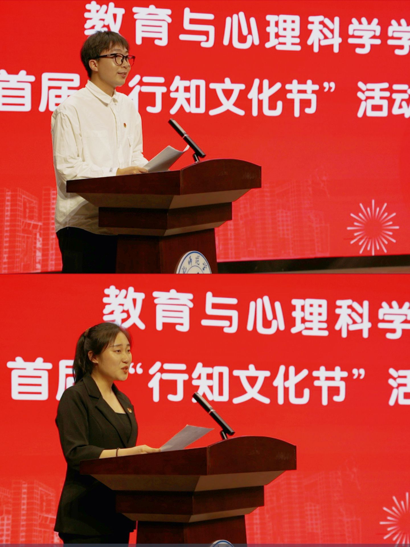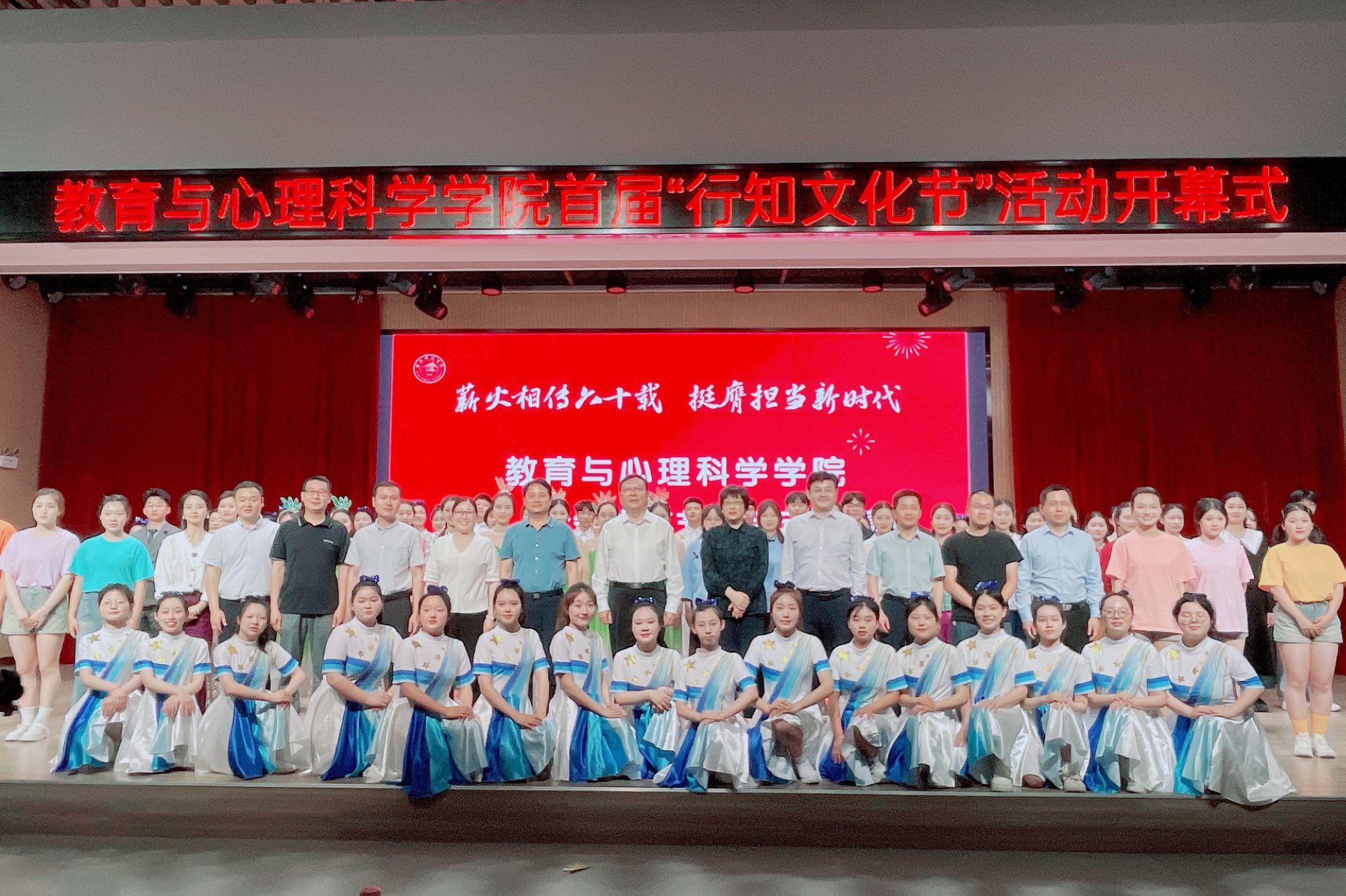 开幕式文艺表演在学前教育专业选送的幼儿韵律操《孩子的天空》中拉开帷幕,欢快的运动节奏、灵活的肢体语言展现了大学生昂扬向上的青春活力。附属西安路学校选送的课本剧《梅兰芳蓄须》,讲述了京剧大师梅兰芳先生蓄须明志的爱国故事,6位小学生的纯真演出,赢得了现场观众的阵阵掌声。学前教育专业选送的古典舞《茉莉花》,展现了学生们扎实的专业技能,优美的舞姿让现场观众如痴如醉。小学教育专业选送的空竹表演《水龙吟》,完美呈现了青年大学生对中华优秀传统文化的传承和创新。荣获安徽省第七届大学生艺术展演一等奖的原创音乐剧《燃灯远山 守望未来》讲述了合师学子扎根基层,积极服务乡村教育的感人故事,学生们将支教老师与留守儿童的师生情谊演绎的感人至深。随后,2020级两位优秀学生代表进行了精彩发言,今年以407分笔试成绩、专业第一优势,成功考取南京大学硕士研究生的杨云康同学分享了自己在行知文化引领下奋发向上、追求卓越的成长经历;荣获第九届“田家炳杯”全国师范院校师范生教学技能竞赛一等奖等80余项奖项获得者的王雅娴同学,讲述了自己以行知精神为引领,在追寻行知的道路上育师德、养师爱、学师才、练师能的奋斗人生。应用心理学专业选送的朗诵《四季行知》,充分展现了陶行知先生的教育思想和开拓求新的创造精神。学院合唱团带来的歌曲《红心牵绊 母子情长》和《校歌》,婉转流长,气势磅礴,唱出了教院学子奋勇争先的青春华章,为开幕式艺术表演画上圆满句号。