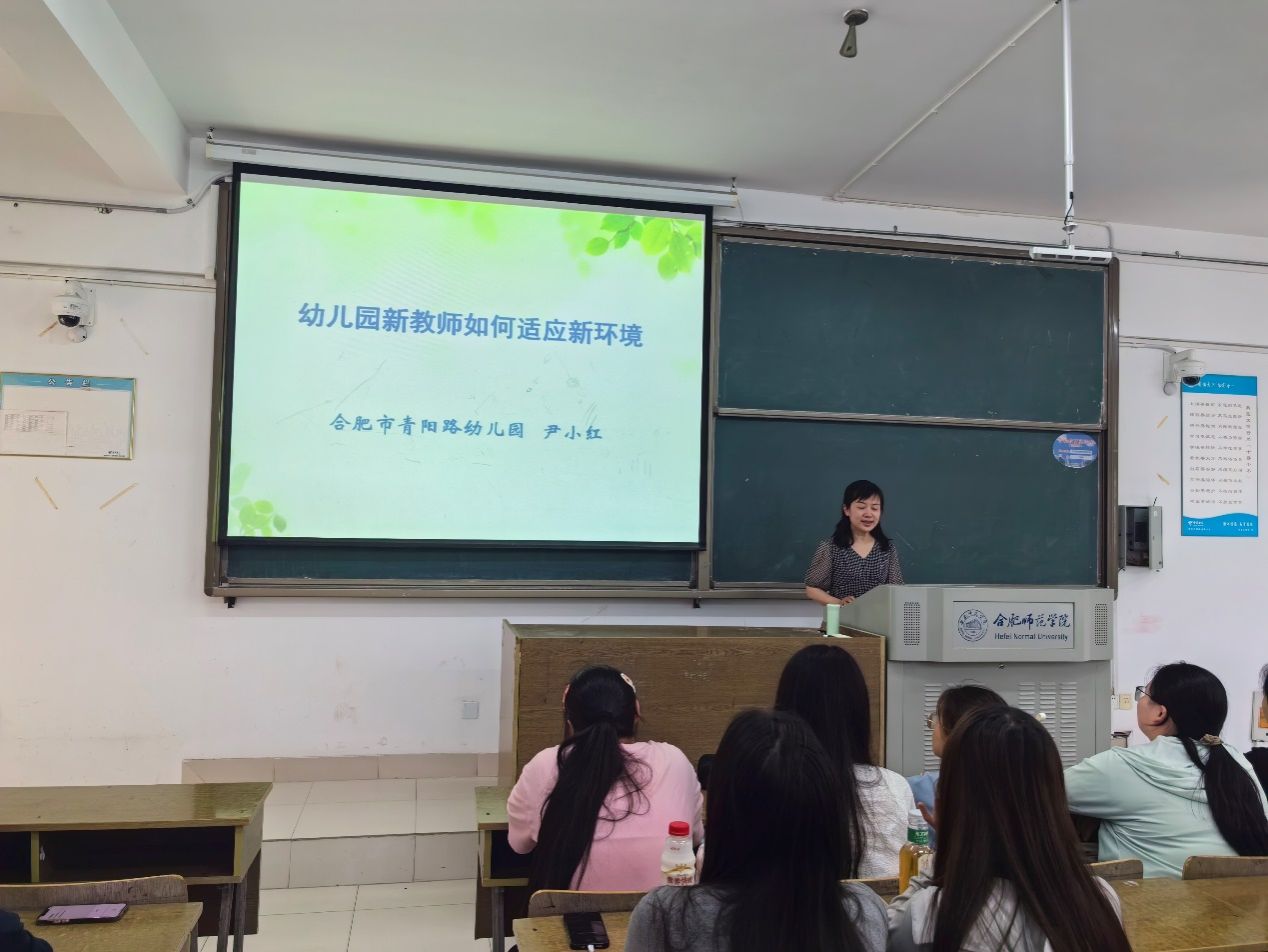 为进一步加强学前教育专业师范生与幼儿园教育一线的联系,不断提升学生适应幼儿园教育环境的综合能力,强化学生的幼儿教育实践素养,5月26日下午,tyc5997太阳集团学前教育系邀请合肥市青阳路幼儿园尹小红园长为学前教育专业学生作“幼儿园新教师如何适应新环境”专题讲座。