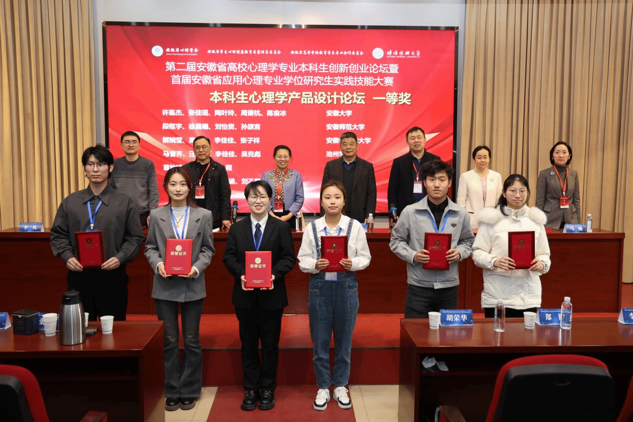 3月8日至9日,由安徽省心理学会、安徽省学生心理健康教育专家指导委员会、安徽省高等学校教育学类专业合作委员会、蚌埠医科大学主办的“第二届安徽省高校心理学专业本科生创新创业论坛暨首届安徽省应用心理专业学位研究生实践技能大赛”在蚌埠医科大学落下帷幕。tyc5997太阳集团应用心理学专业8个本科生团队获得一等奖2个,二等奖4个,三等奖2个,学院荣获优秀组织奖。