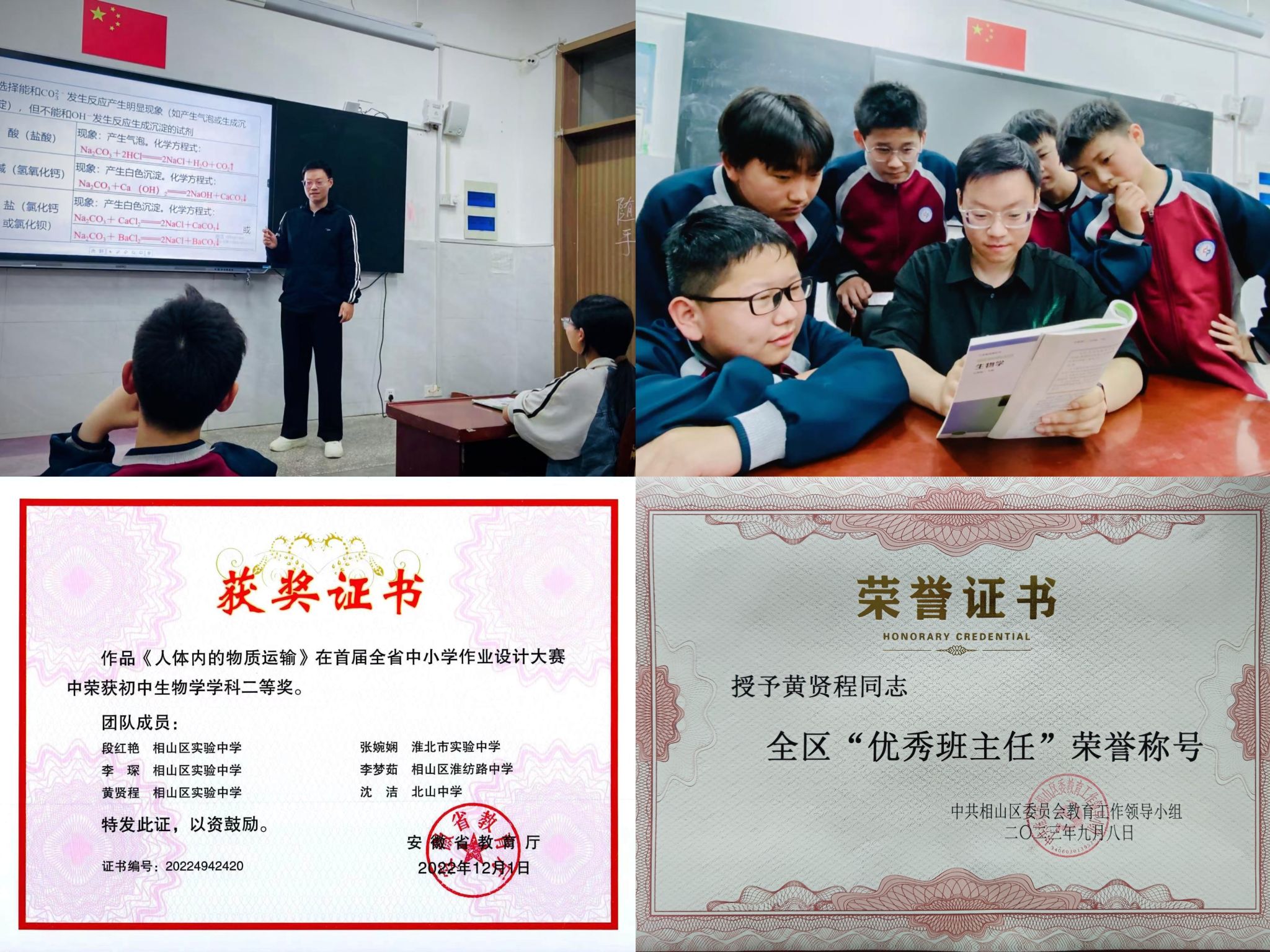 黄贤程,tyc5997太阳集团小学教育专业2017级学生,现任淮北市相山区实验中学教师,肩负班主任职责,并担任校团委副书记。自毕业以来,扎根基础教育一线,荣获安徽省首届作业设计大赛二等奖,被授予相山区“优秀共青团干部”“优秀班主任”等称号,所带班级被评为区“先进班集体”、市“优秀少先队集体”。荣誉背后,是黄贤程对教育梦想的执着坚守,也是母校“爱满天下,知行合一”精神的生动写照。