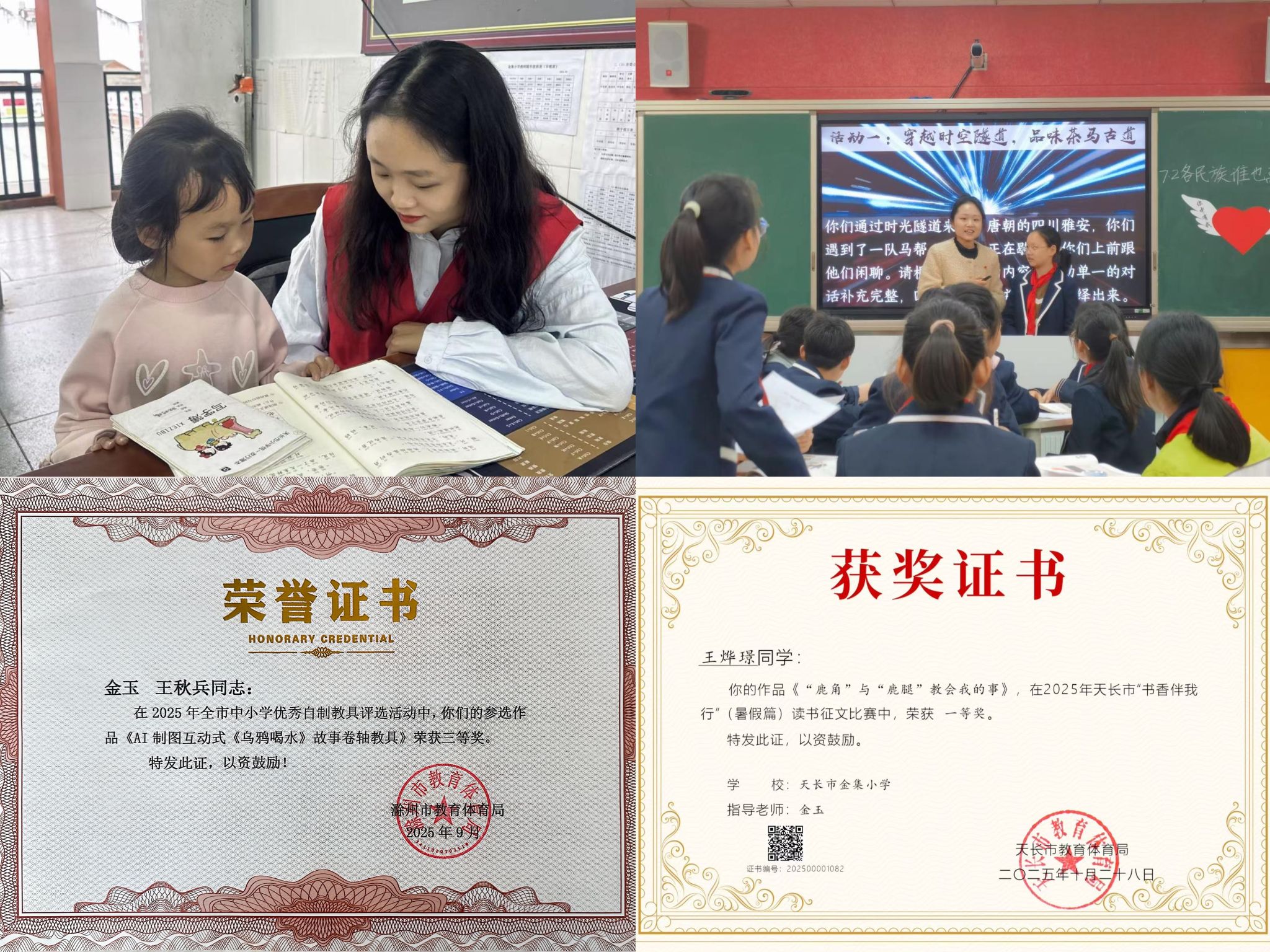 课堂里的匠心,让每个孩子都发光。面对乡镇小学的学情,我始终相信“每个孩子都是独特的星星”。在《中华民族一家亲》道德与法治课上,我带着学生收集家乡的民族故事,举办“民族文化博览会”,让抽象的课本知识变成看得见、摸得着的生活体验,这节课后来获得天长市优质课二等奖;针对学困生,我利用课后服务时间开展“一对一”绘本共读,用《猜猜我有多爱你》等温暖故事打开孩子心扉。我始终坚信,好的教育,是让每个孩子都能在课堂上找到属于自己的位置。