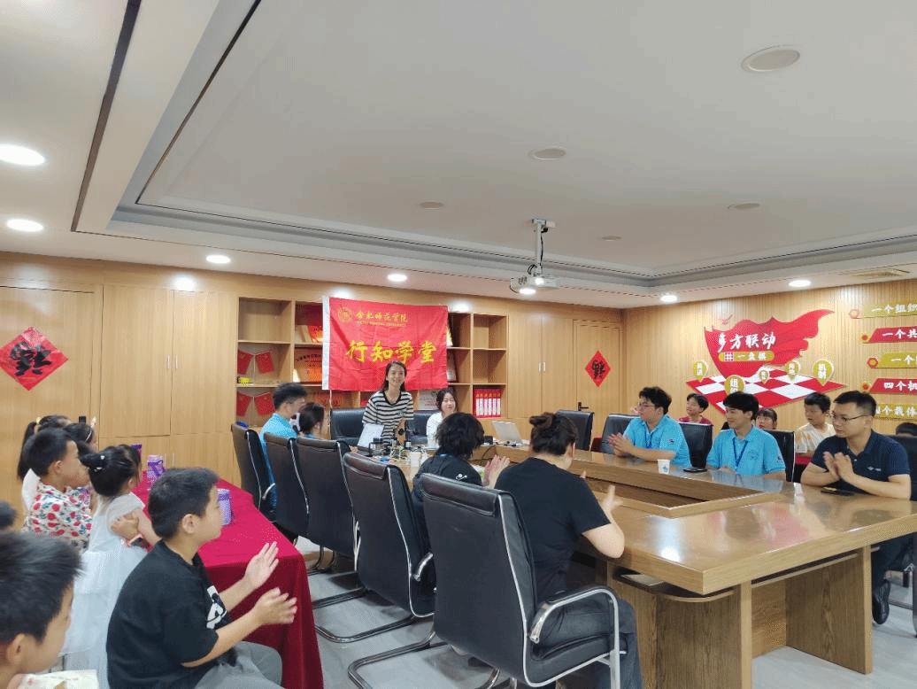 唐银介绍了学院行知学堂的开办历史和办学成效,对小先生们提出了工作要求。小先生代表李雨杰同学介绍了本次学堂的课程安排,上届优秀小学员代表桑雯欣进行了发言。