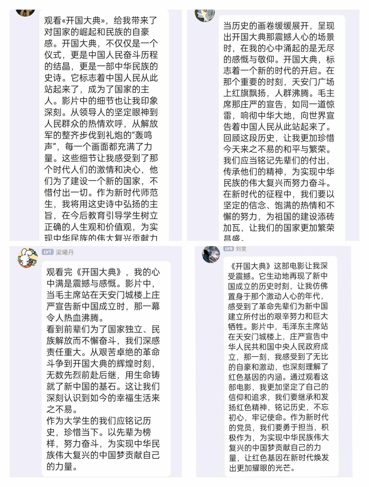 观影结束后,学生党员纷纷表示,此次活动不仅是一场生动的党性教育,更是一次深刻的思想洗礼,老一辈共产党人的创业精神必将激励着我们铭记历史、牢记使命,永葆“苟以国家生死以”的赤子之心,在逐梦远航中茁壮成长,在奔赴山海中砥砺前行,以实际行动践行爱国主义精神的内涵。(tyc5997太阳集团 胡蝶 方新华)