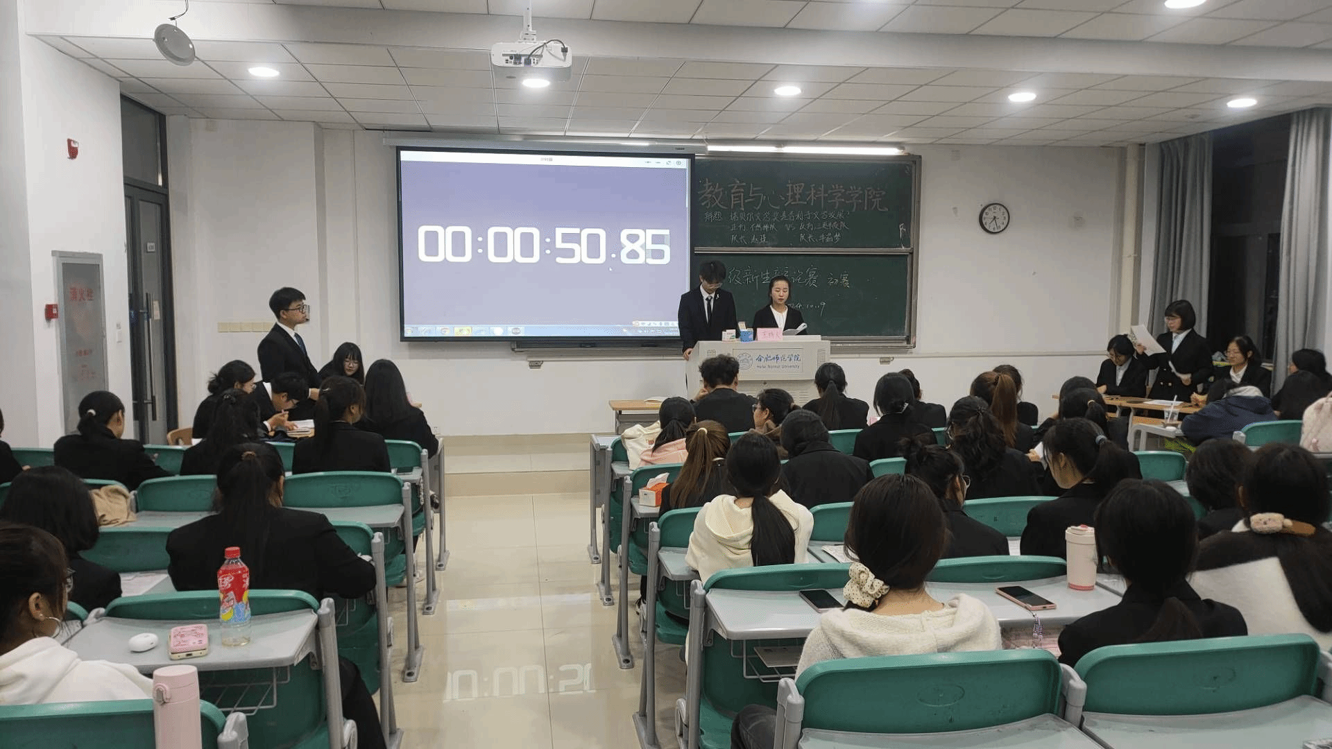 初赛现场气氛热烈,来自2024级小学教育、学前教育、应用心理等专业的几支参赛队伍轮番上场,针对辩题展开激烈辩论。辩手们旁征博引,妙语连珠,正反双方就辩题针锋相对,用犀利的言辞攻击对方立论的漏洞,用恰到好处的实例证明己方观点,现场观众聚精会神,时不时为双方的精彩发言鼓掌喝彩。