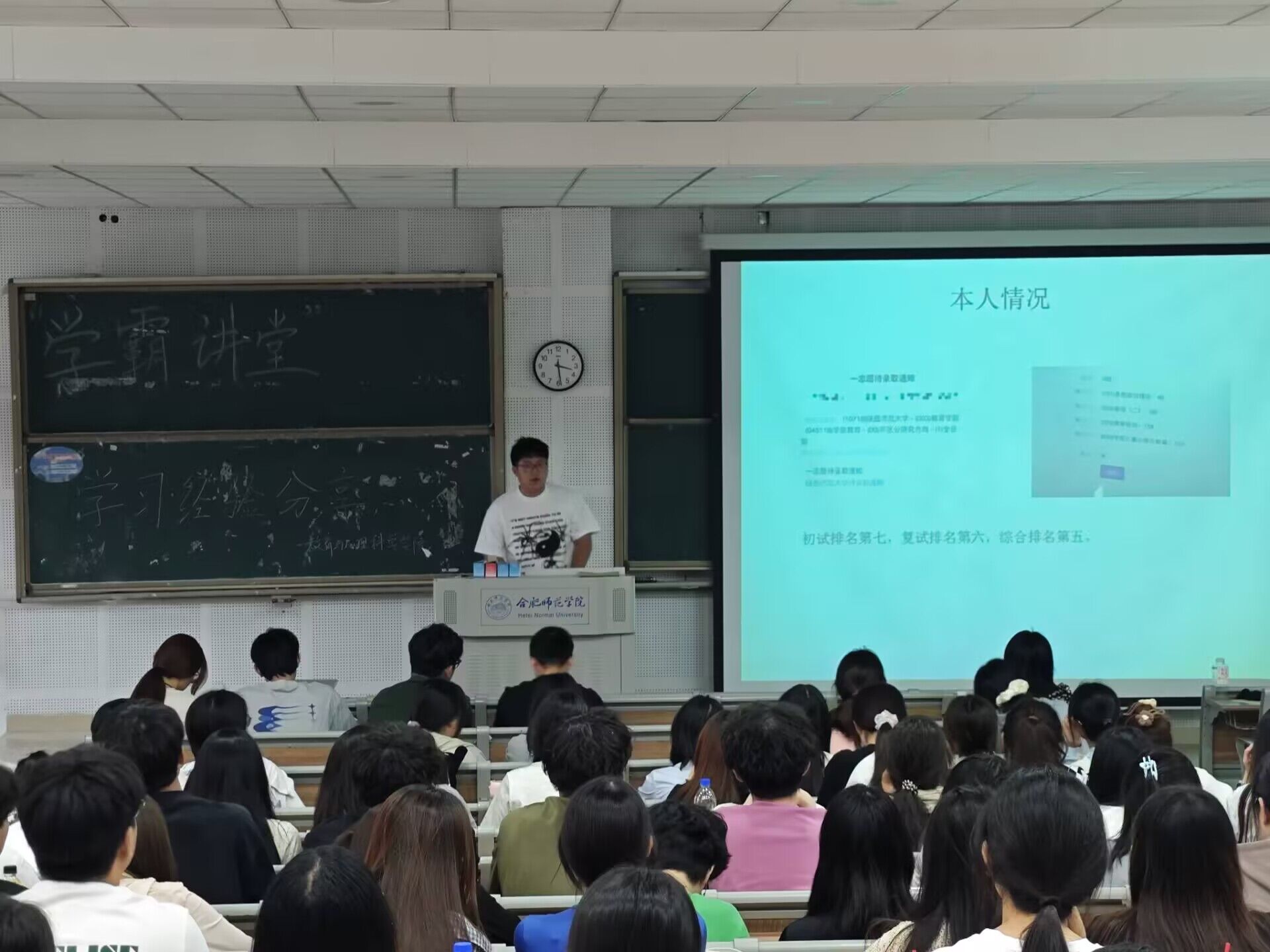 为充分发挥优秀学子榜样引领作用,助力青年学生掌握学习方法、明晰发展方向、激发学习热情,5月14日,tyc5997太阳集团在滨湖校区博学楼D101教室举办“学霸讲堂”活动。tyc5997太阳集团国家奖学金获得者、2024年度“感动合师”十大青年学生之拼搏人物——2021级小学教育专业王学优,考取陕西师范大学硕士研究生、2021级学前教育专业胡宏,以及2024年度十佳班级、五四红旗团支部标兵获得者——2022级小学教育4班班长柏雪作为优秀学生代表,分享了学习经验和成长心得,2023、2024级200余位同学参加了学习分享。