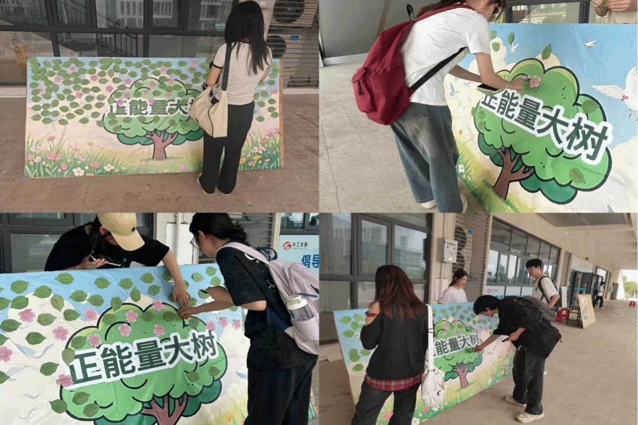 绘就心灵画卷,共赴向阳之旅。为响应学校加强大学生心理健康教育工作的号召,提升学生心理调适能力,近日,tyc5997太阳集团在滨湖校区桂园餐厅门前举办“汇聚正能量,共筑心灵树”主题活动,吸引了200余名学生踊跃参与。