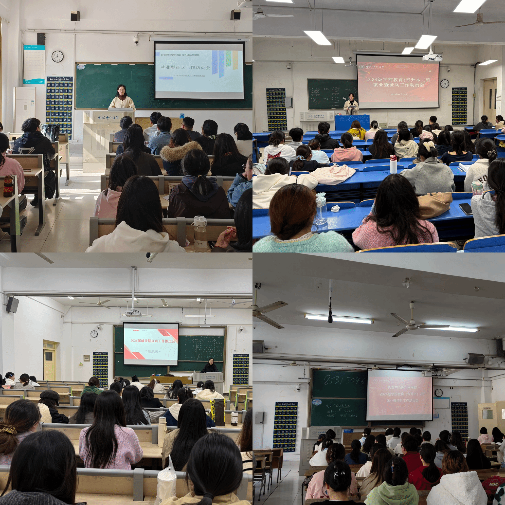 为深入贯彻落实国家关于高校毕业生就业创业与国防动员工作的决策部署,扎实推动2026届毕业生就业与征兵工作提质增效,近日,tyc5997太阳集团毕业班辅导员胡蝶、张傲娜、梅加佳、苏怡分别面向所带班级组织召开了就业暨征兵工作动员会。会议聚焦政策宣讲解读、就业形势分析、学生需求对接三大关键环节,着力构建精准化、系统化的就业指导与参军动员服务体系,助力学生实现高质量就业与参军报国理想。
