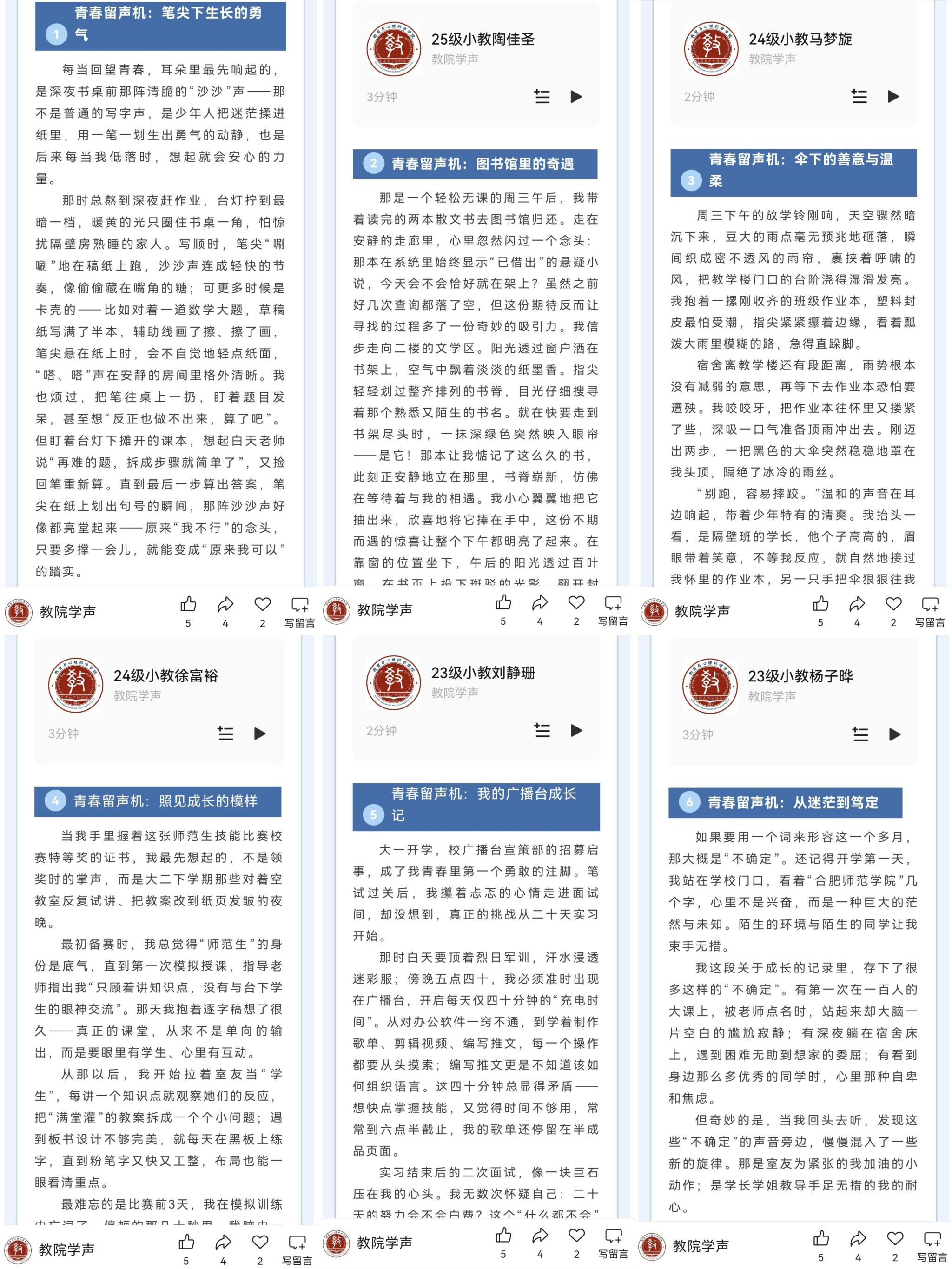 聆听他人的积极故事,不仅能提供情感慰藉,更能激发听众回顾和重构自身经历,从看似平常的生活中发掘出属于自己的积极力量和成长证据,从而增强面对逆境的心理韧性。这种由同龄人引领、通过声音传递的“隐性”支持,潜移默化地促进着积极情绪体验的传播与心理健康素养的提升,有助于在大学生群体中营造关注心理健康、乐于分享互助、勇于面对挑战的良性文化氛围。