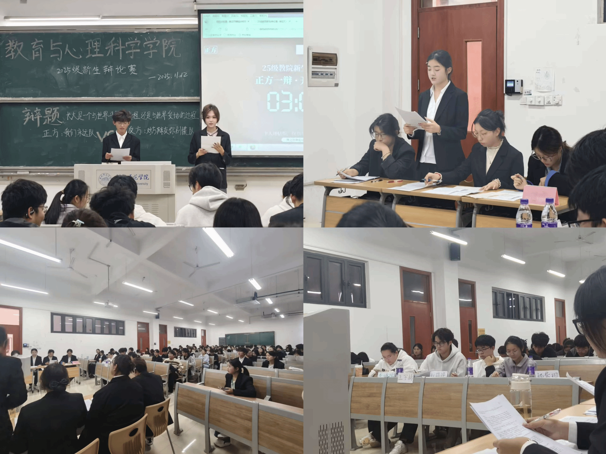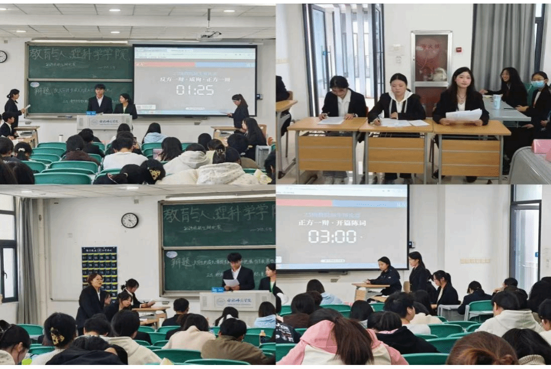 初赛于19日率先打响,七支代表队围绕富有思辨价值的议题展开激烈交锋。赛场上,辩手们意气风发,思维缜密。立论环节,观点鲜明,框架清晰;驳论与自由辩论环节,双方针锋相对,反应敏捷,既有理性剖析,也不乏机智幽默,展现出扎实的知识储备与出色的临场应变能力;总结陈词阶段,辩手们精准梳理脉络,升华价值立意,其逻辑深度与语言感染力赢得现场阵阵掌声。整个初赛过程高潮迭起,充分展现了教院学子昂扬的精神风貌和优秀的思辨素养。
