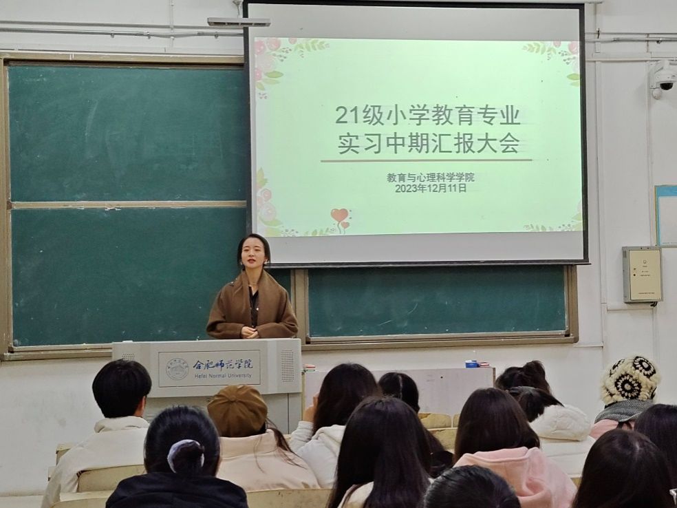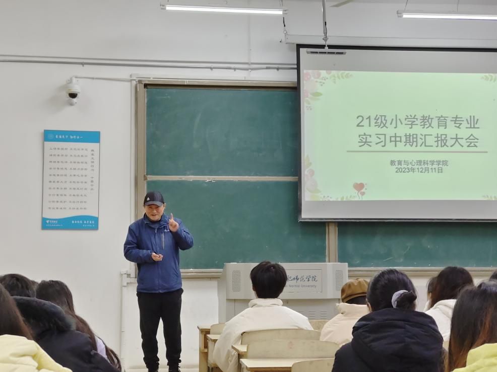 本网讯 为深入了解学生实习情况,及时掌握学生实习动态,有效推进实习工作的持续开展,12月11日晚,教育心理科学学院组织开展了实习中期总结大会。闫龙院长到场指导,会议由唐银副主任主持,2021级小学教育专业全体学生到场参加。