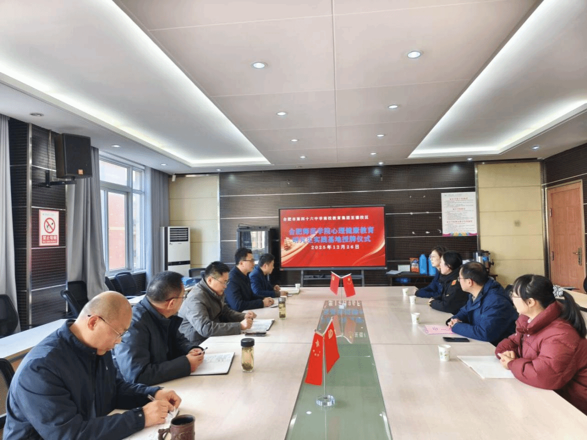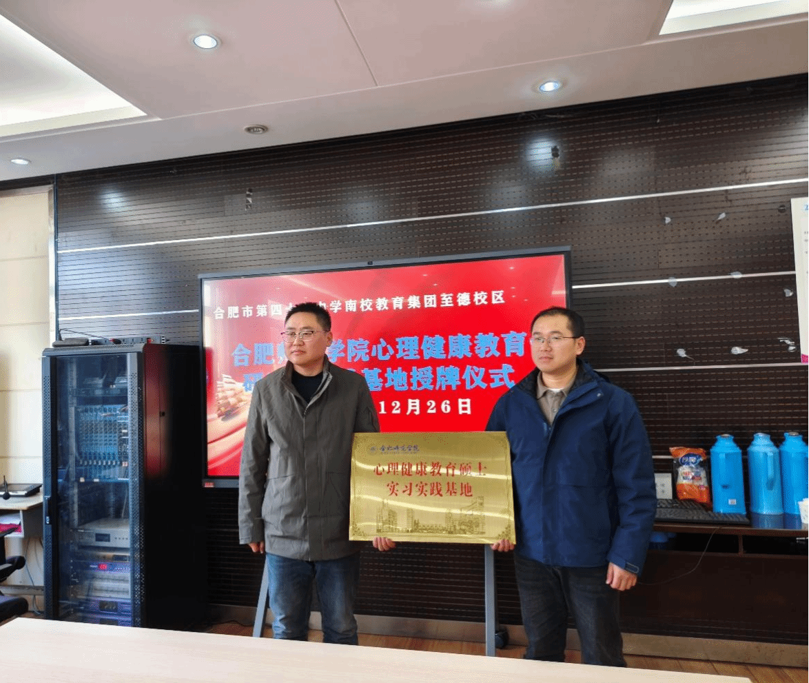 为加强学院与基础教育学校实习实训和就业等方面的合作交流,进一步提高心理健康教育硕士研究生人才培养质量,推进tyc5997太阳集团心理健康教育硕士联合培养示范基地建设,12月26日下午,tyc5997太阳集团副院长胡哲带队走访心理健康教育硕士实习实践基地“合肥市第四十六中学南校教育集团至德校区”,并进行座谈交流和基地签约授牌仪式。
